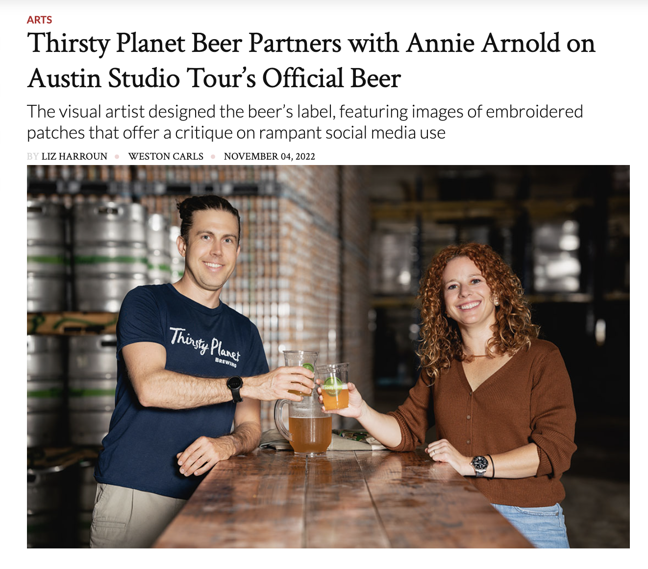 “Thirsty Planet Beer Partners with Annie Arnold on Austin Studio Tour’s Official Beer”, Tribeza magazine, November 4, 2022 To read the full article click here.